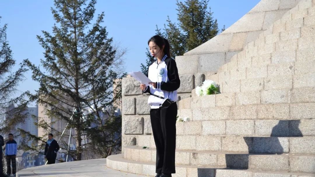 寄情在仪,追思在心。同学们排着整齐的队伍,迈出坚定的步伐,踏上台阶,感悟先烈慷慨赴国难的激情、志士英勇抗敌寇的豪迈。同学们心存敬意,用实际行动表达对烈士的敬意,他们将花束摆放在纪念碑前,也把内心深深的敬意献给了永垂不朽的革命先烈。这每一朵鲜花都代表着人们对烈士英雄的敬意与感激之情,都缅怀了革命先烈为国家和人民作出的卓越贡献!